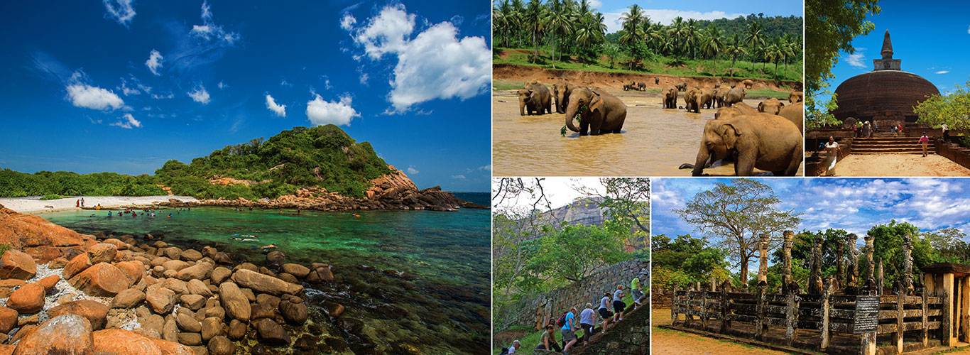 Ngombo, Anuradhapura, Sigiriya, Polonnaruwa, Trincomalee, Pasikuda, Arugambay, Ella, Nuwaraeliya, Kandy, Negombo